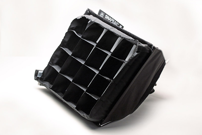 The ten-by-sixty degree diffusion creates a flat plane that can be controlled with the barn doors, although sharper and more accurate cuts can naturally be made with a flag even a foot or two away. DoPChoice offer a compatible snapbag. The resulting foot-square diffused light is naturally not as bright as conventional soft panels which are typically more than twice the power, but it’s effective, including an approximately conical first-stage diffuser to avoid hot-spotting the front panel.