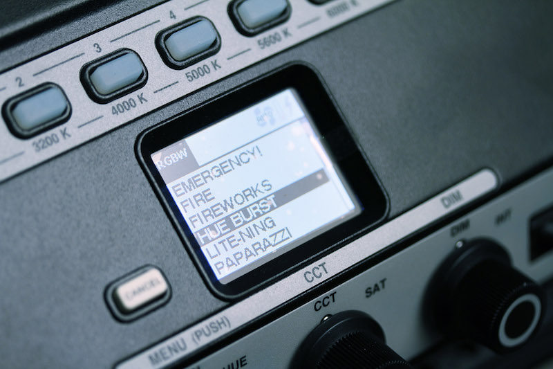 The light inherits the very useful row of preset buttons across the back from other Litepanels designs, which can be programmed with user configurations or toggled back to a factory preset mode of various colour temperatures. The usual huge amount of external controllability exists here, including DMX, RDM, Apollo CRMX, WDMX and Bluetooth. The power supply is external but mounts in the frame, so it can be remoted to save weight. The light powers up with the mains.