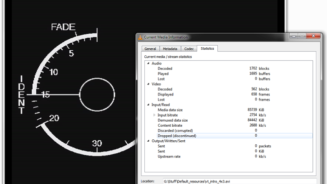 This is VLC evaluating a standard-definition DV file, which should have a data rate of 25Mbps. On this simple graphical image, it's actually using a tenth of that