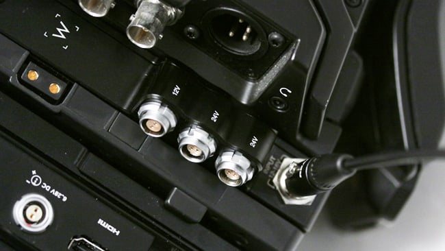 If things get too scary, there’s a programmable current trip on the operator side which can be set for 3.8, 5.8 or 9 amps, though that probably shouldn’t be taken as an indication that any particular power source can actually supply nine amps for accessories plus what the camera draws. Large cinema batteries probably will, but smaller ones are often fused at ten amps and something else is likely to trip before a nine-amp breaker will. Still, it’s a nice feature to have and saves carrying a lot of fuses, though some of the connectors are still conventionally fused.